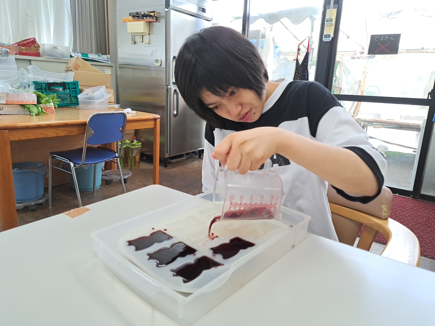 7月26日㈯に開催される”にっこりえんがわマルシェ”に向けて、涼を感じる”ねこの氷”をつくっています。