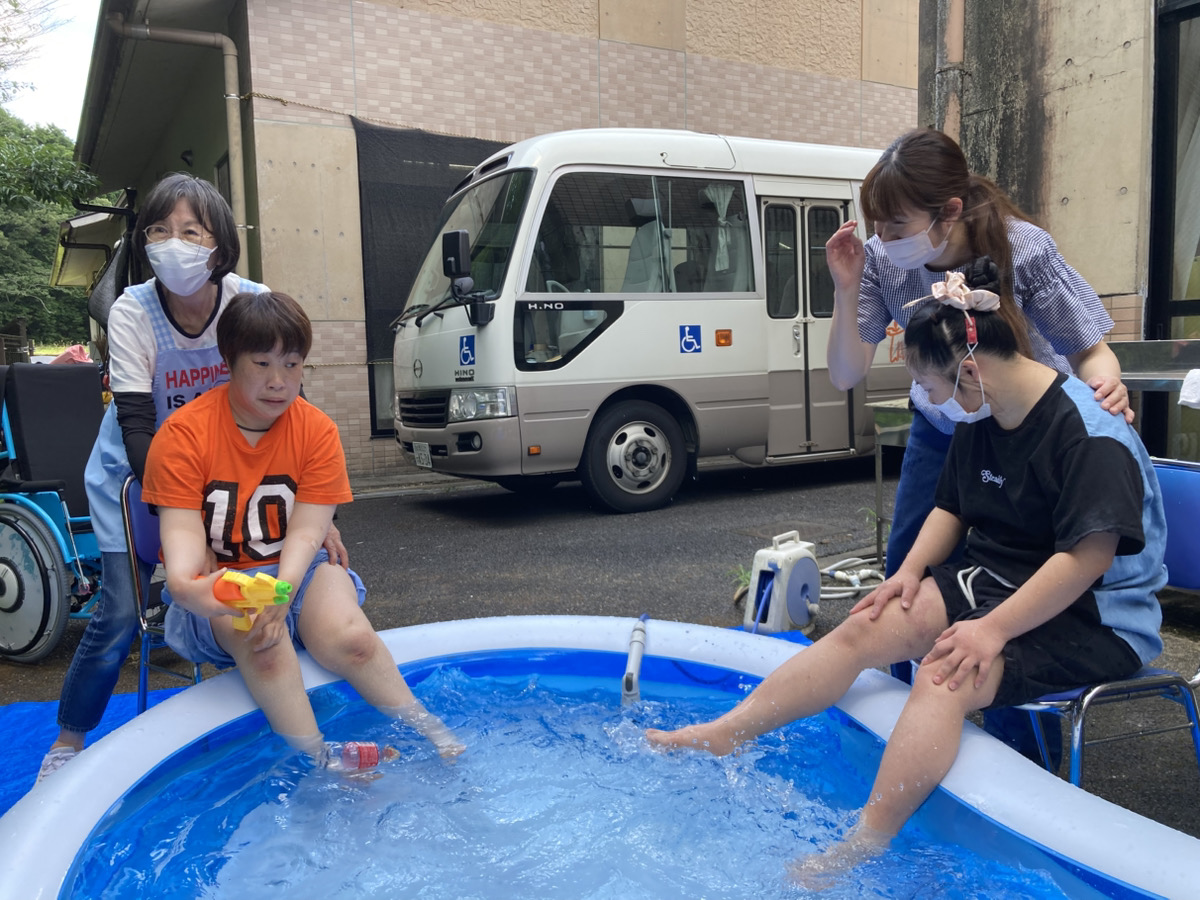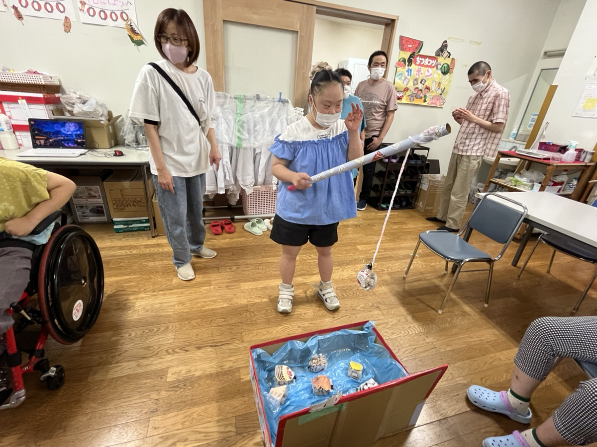 9月の初めにアトリエと一緒に夏祭りをしました。アトリエ特製のカキ氷や、フランクフルト、マカポン釣り、輪投げなど楽しい催し物がたくさんでみんなで楽しみました♪