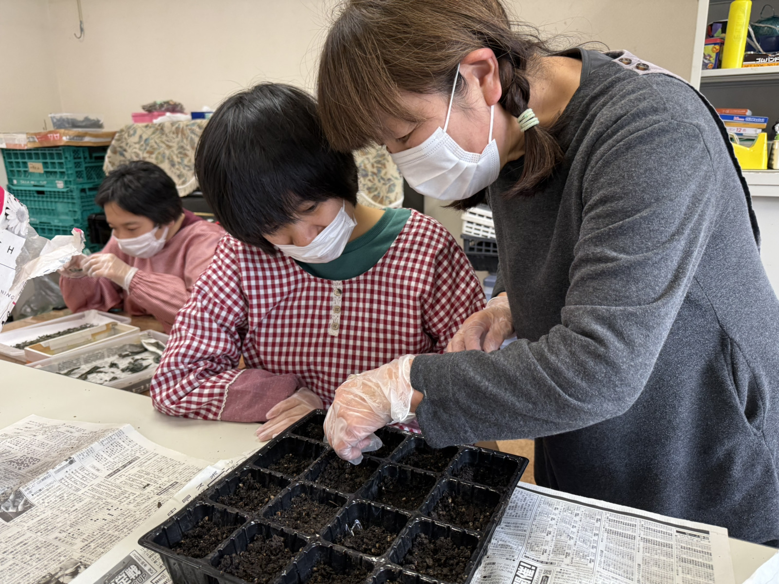 3月に入り暖かくなってきたので、毎年恒例の藍の種まきをしました。男性チームは豪快に土を入れてくれ、細かい作業が得意な女性チームは手寧に種をまいてくれました。芽が出るのが今からとても楽しみです♪