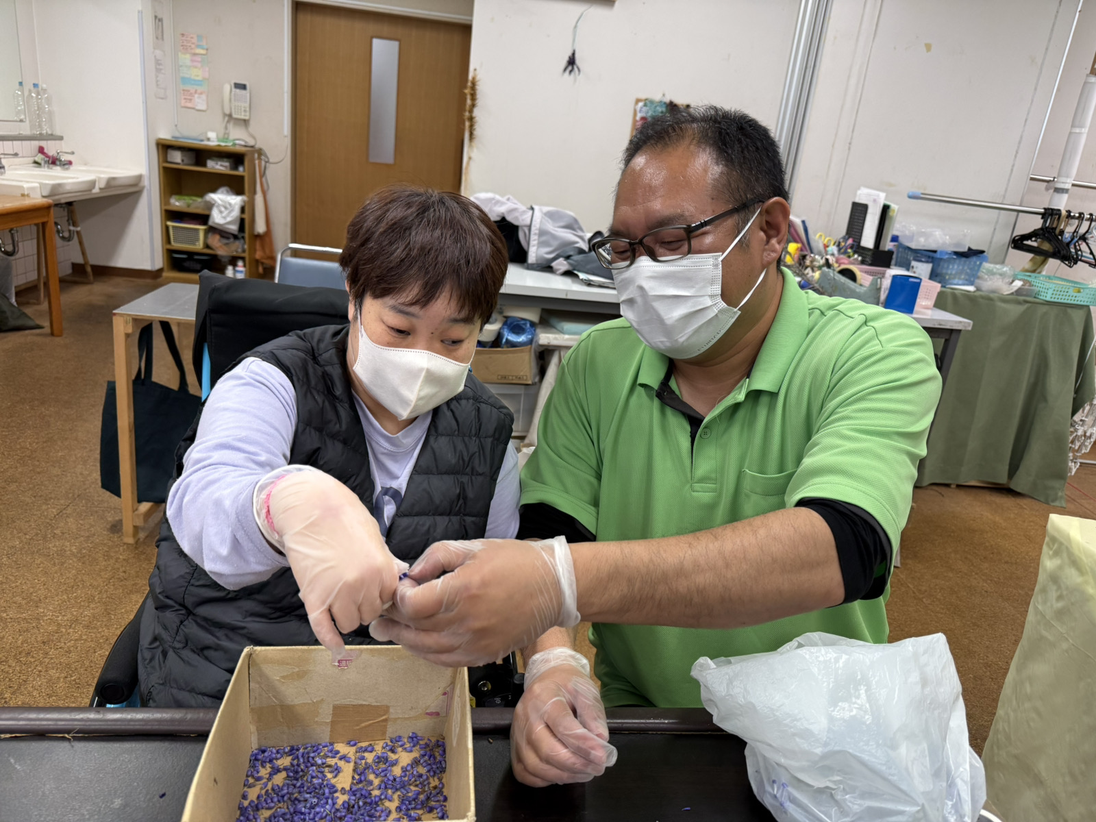 いぶき福祉会の今年度が明日で終わる為、今日は今年度最後の仕事でした。今年もたくさん染めをしたねとみんなで振り返りながら、百々染工房らしくみんなで楽しく笑顔で仕事をしました。少し早いですが、来週から2026年度が始まります。また新たにパワーアップする百々染工房をよろしくお願い致します。